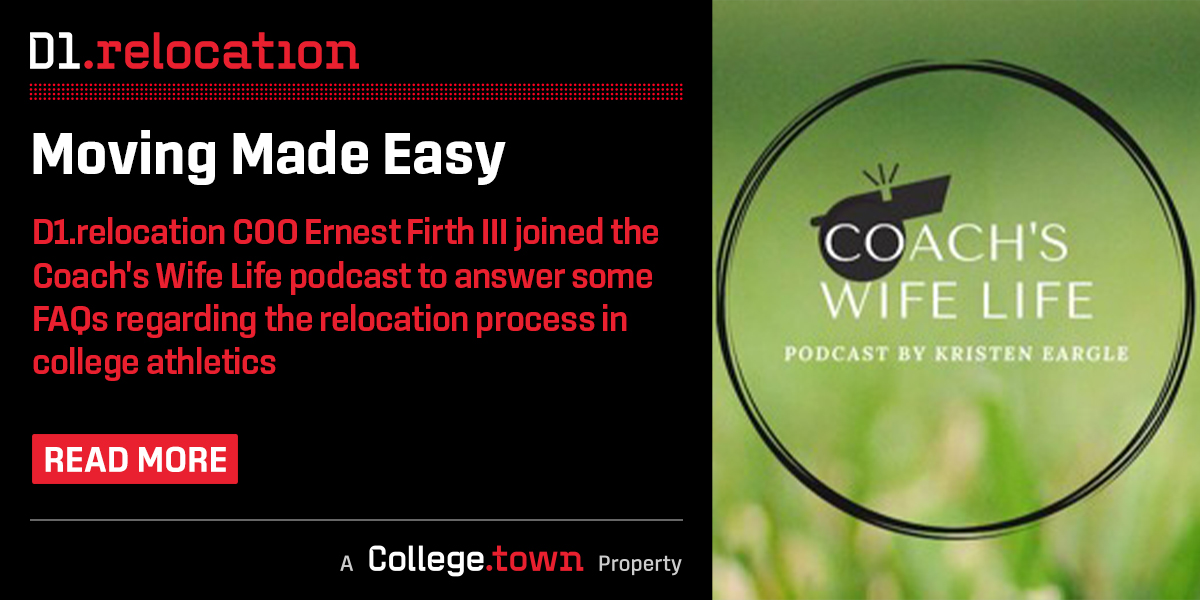 In a recent appearance on the Coach's Wife Life podcast with Kristen Eargle, D1.relocation COO Ernest Firth III detailed the immense logistical and emotional toll of moving on coaching families, describing it as a "full-blown life reset." He explained how D1.relocation, differs from, and offers much more than, a standard moving company by acting as a single point of advocacy to simplify the relocation process for coaches and administrators. Firth noted that D1.relocation was built by "an empathetic group of leaders" who intimately understand the unique challenges of a career in college athletics and are prepared to assist families regardless of their school or budget. Lots more in the full Q&A. (link)